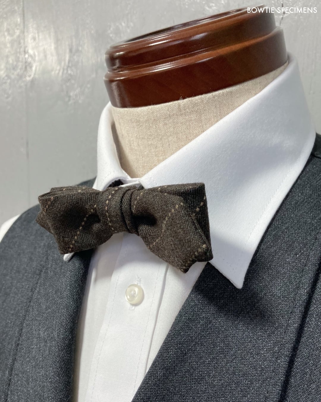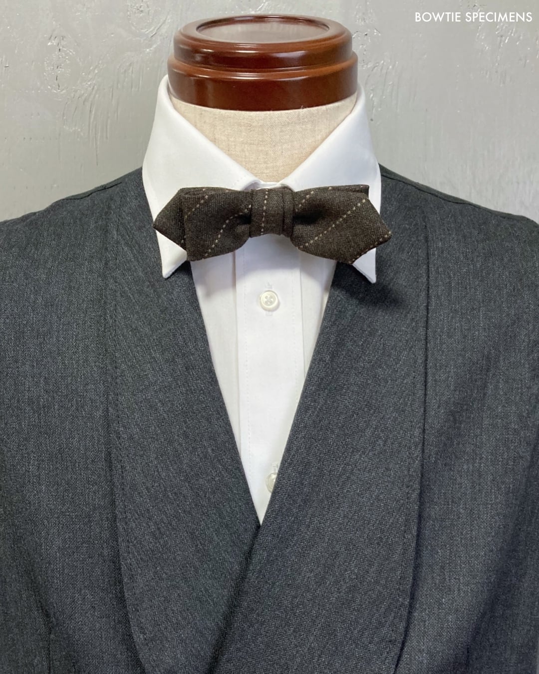 ナローポインテッドエンド形 蝶ネクタイ(ダークブラウン/ストライプ) | カジュアル 細めタイプ