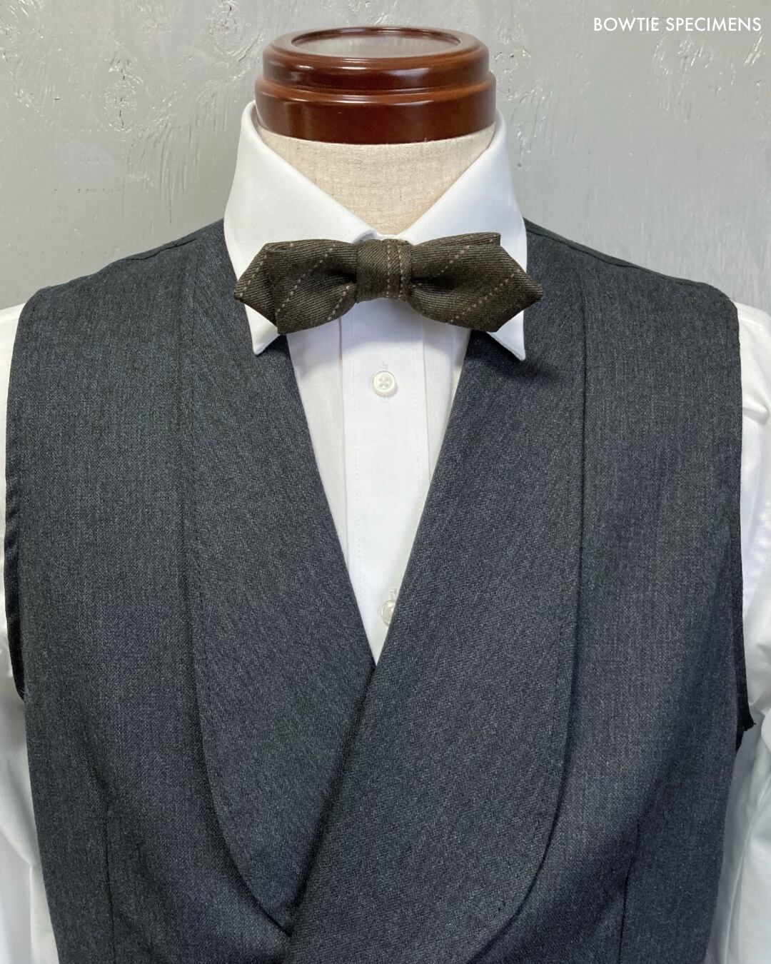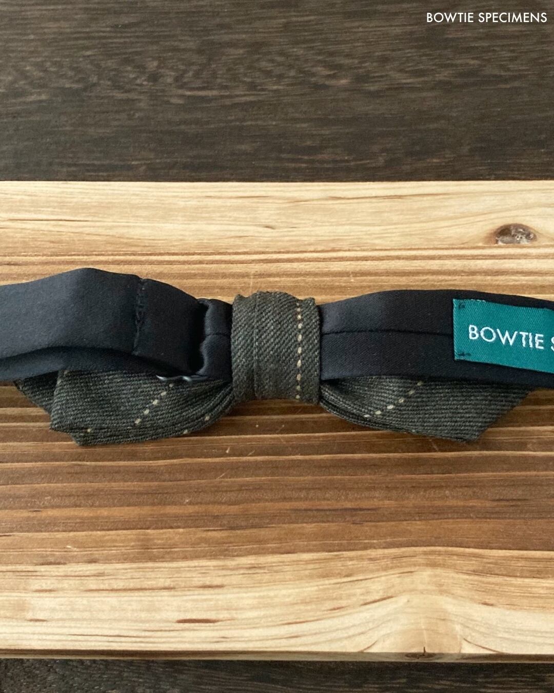 ★蝶ネクタイ ブランド「ボウタイ スペシメンズ」の作り結び蝶ネクタイ 。「作り結び」とは、予め結び目が縫って形作られているもののことで、ワンタッチで手軽に取り外しができます。