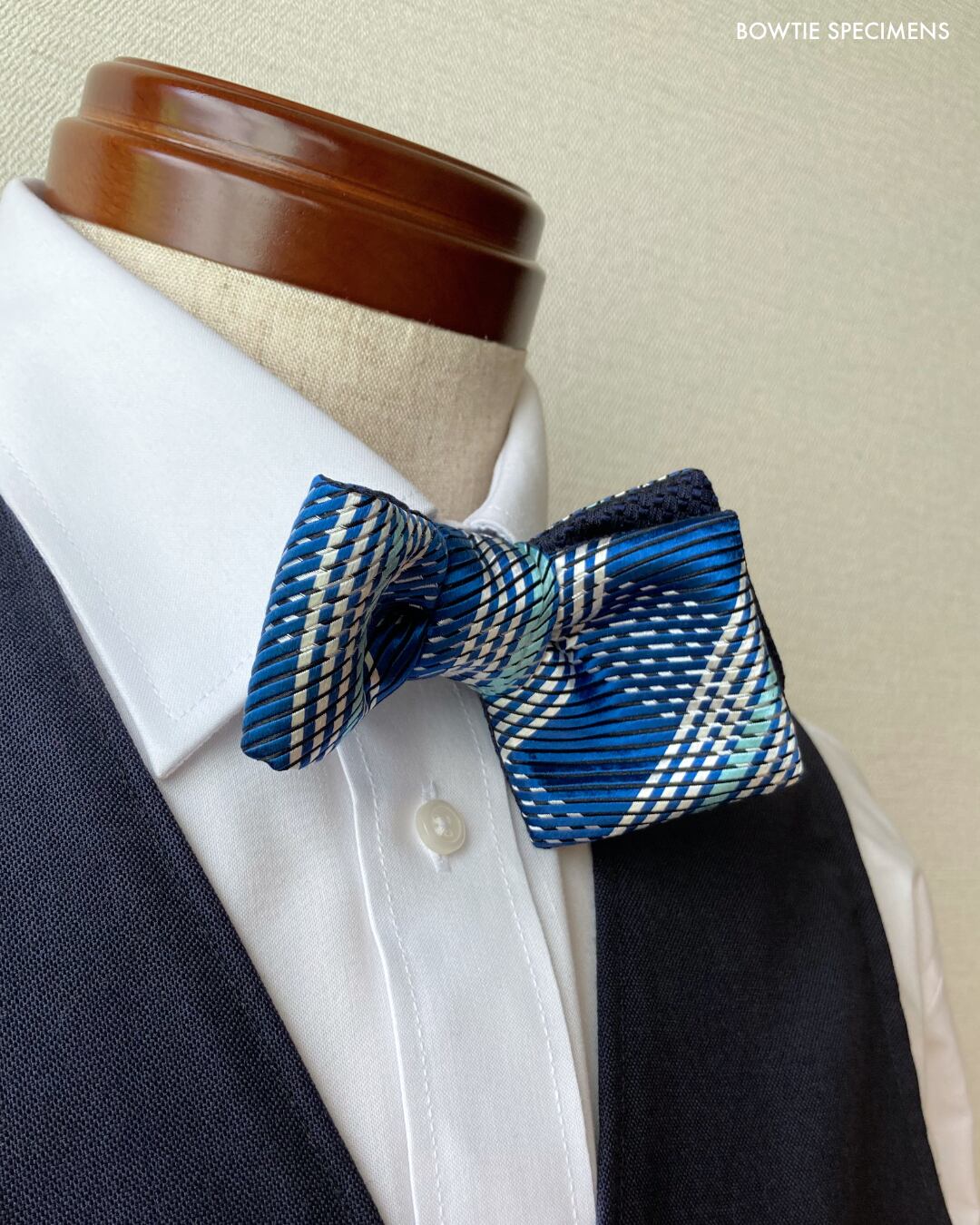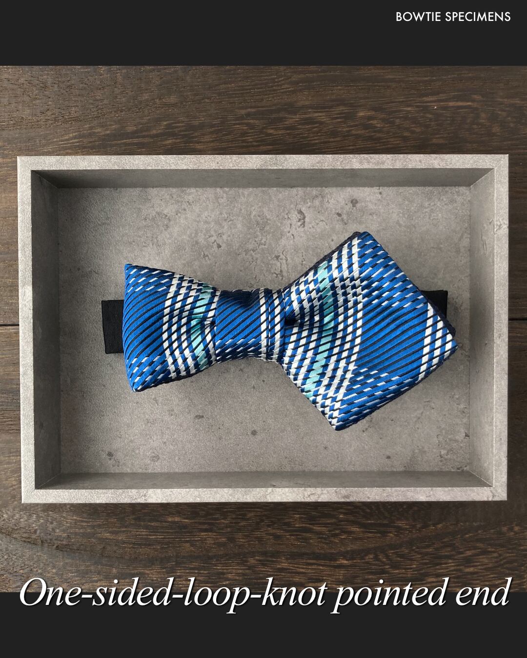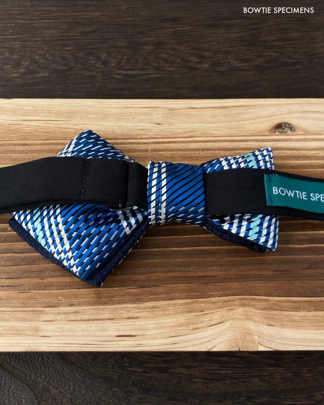 片わな結びポインテッドエンド形 蝶ネクタイ(ブルー×ホワイトストライプチェック) | 片結び チェック柄