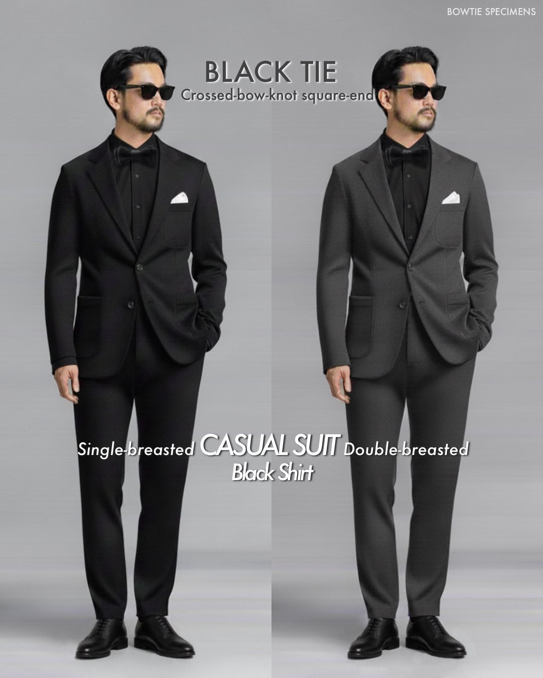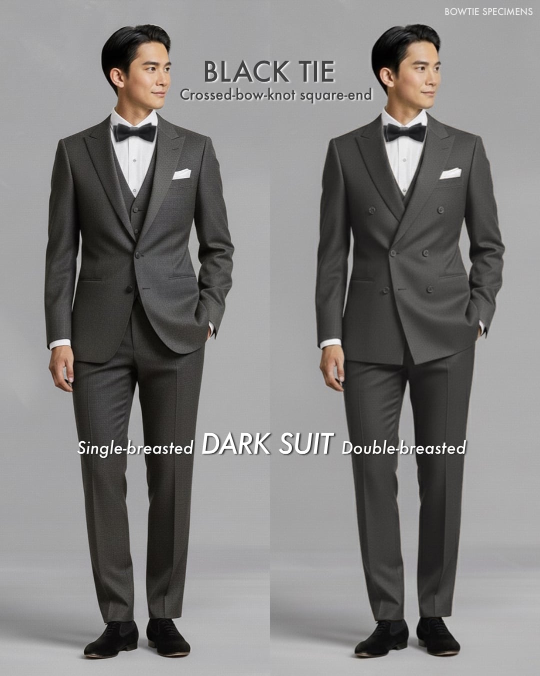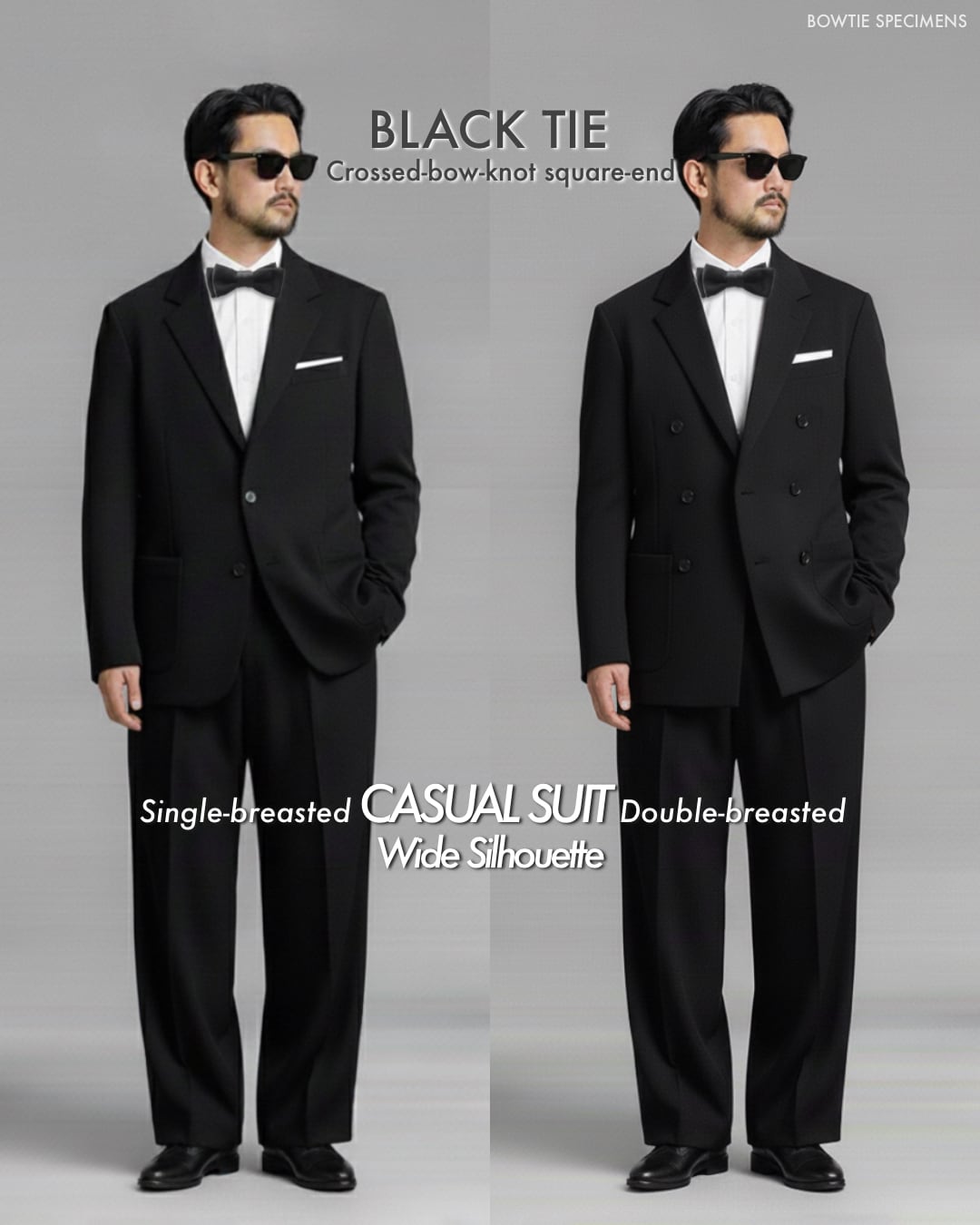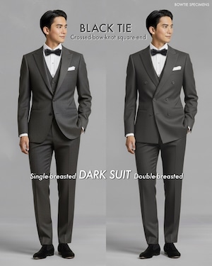 ・ダークスーツに結ぶ「黒の蝶ネクタイ」