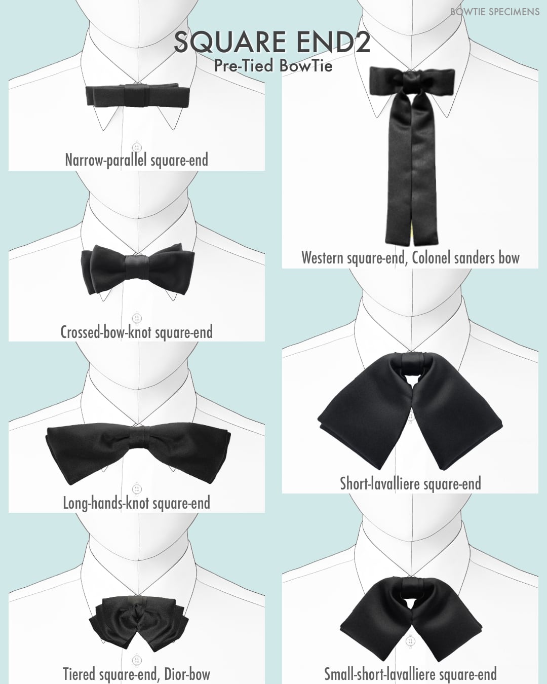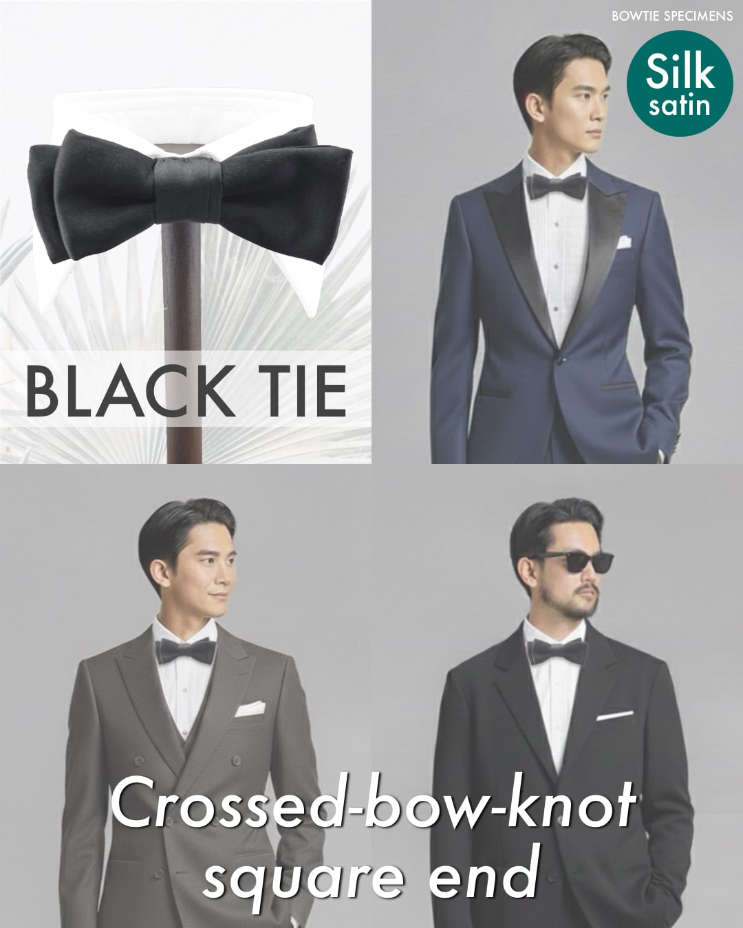 クロスドボウノット・スクエアエンド (ブラックサテン/ソリッド) 作り結び型〈蝶ネクタイ メンズ 大人 黒 bowtie specimens〉