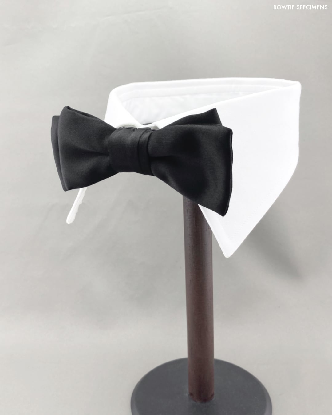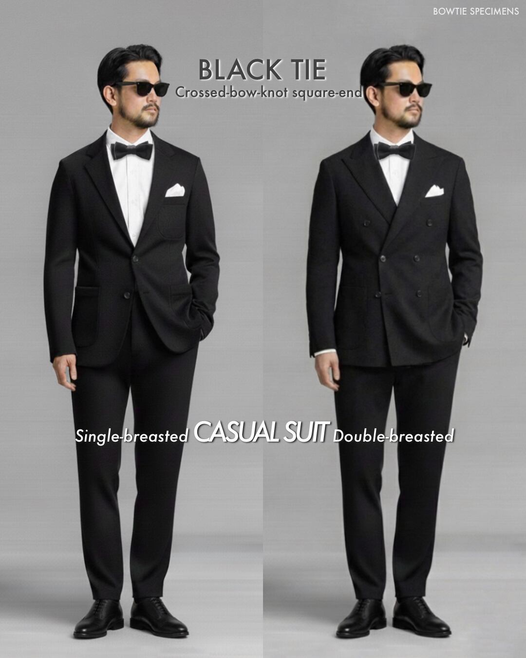 現代は服装の略式化が進み、特に日本国内において、庶民が「燕尾服」や「タキシード」を着用する機会はほとんどありません。当ブランドとしては、そんな時代の流れの中でも、夜間のパーティー等で、ダークスーツに「黒の蝶ネクタイ」を結ぶことは、逆にフォーマル度を上げる1つのアイテムであると考えています。