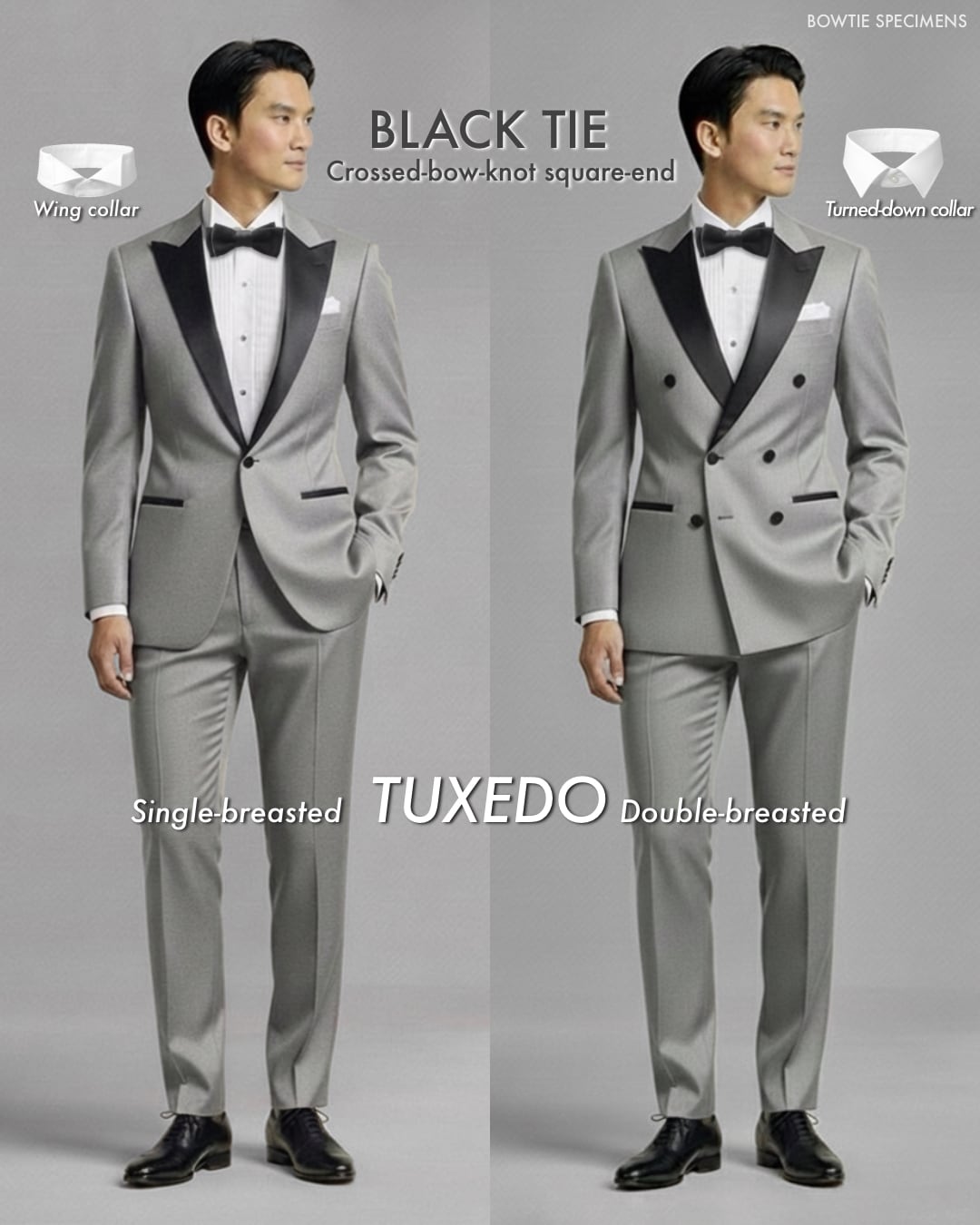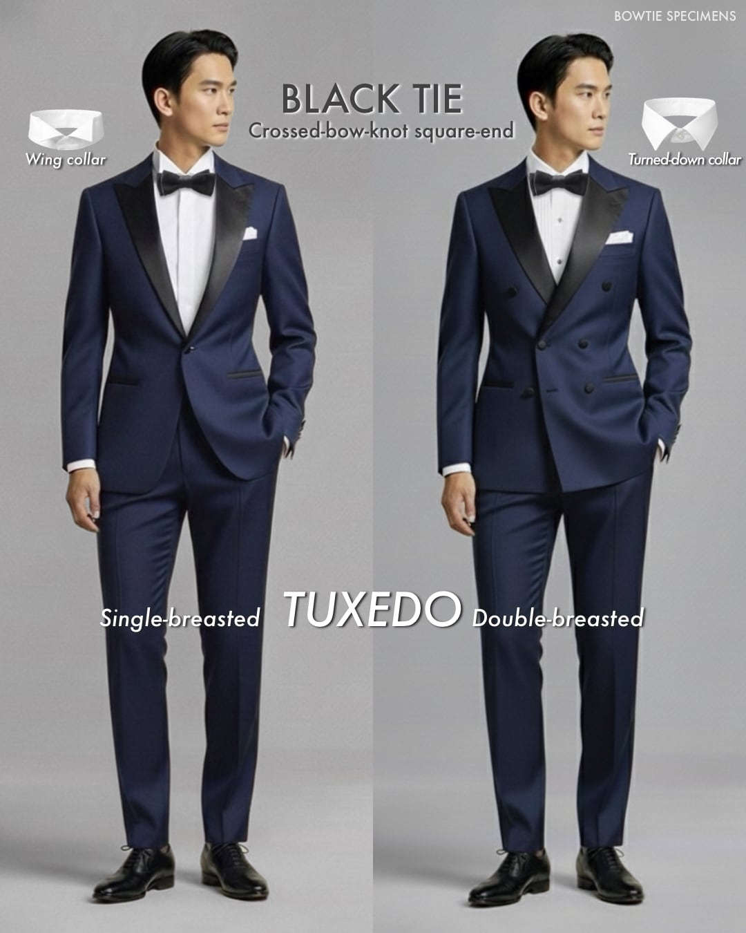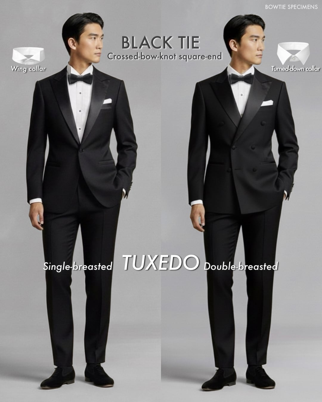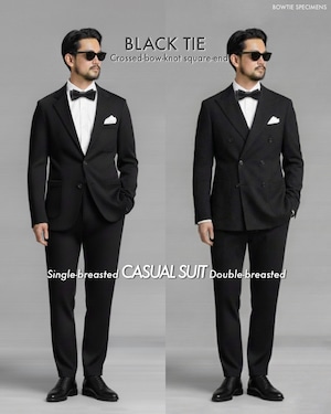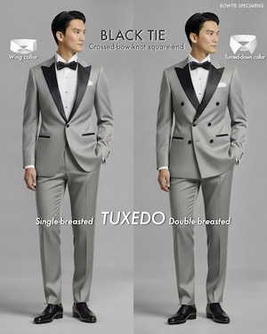 ・20世紀に入り欧米では、「ドレスコード(服装規定)」というものが作られました。その中で「黒の蝶ネクタイ(特にサテン地)」は、「ブラックタイ(夜間準礼装)」という服装のシンボルとなりました。ブラックタイとは、タキシード(ディナースーツ)を着るスタイルのことで、元来は細かなルールが定められています。