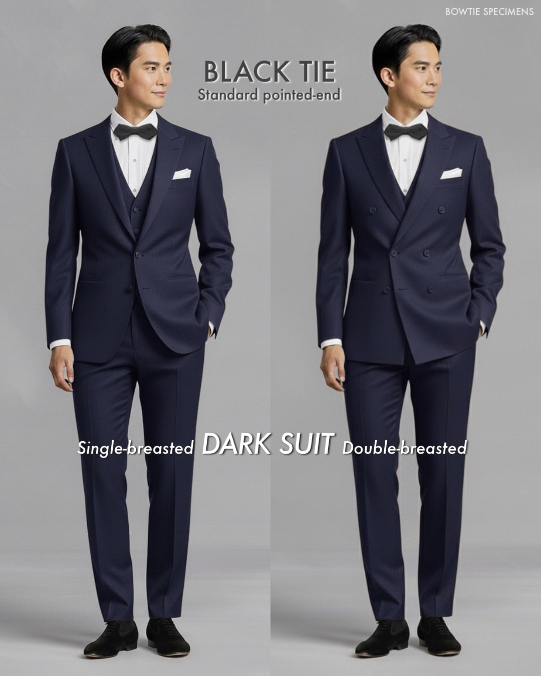 ・ダークスーツに結ぶ「黒の蝶ネクタイ」