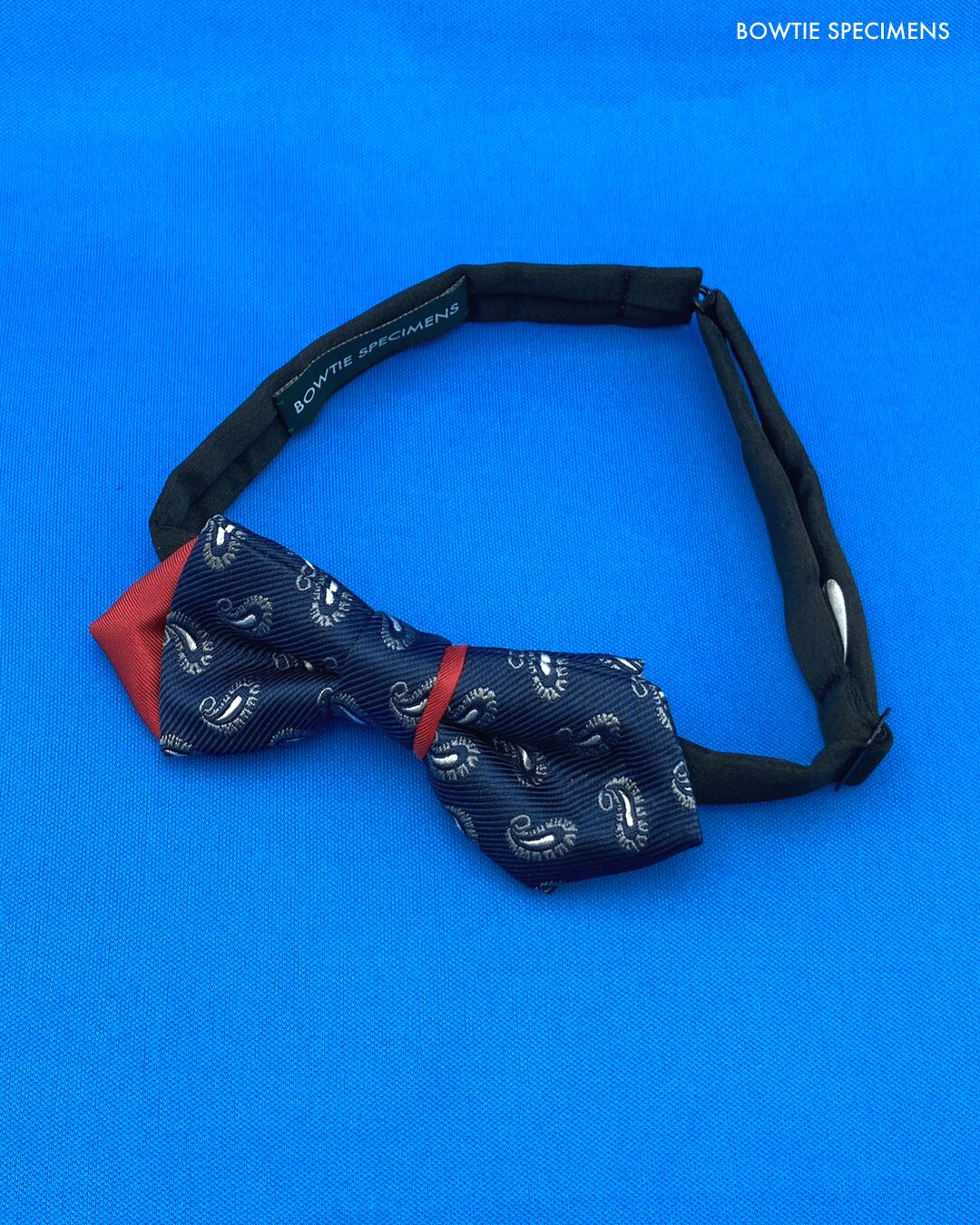 廃番/スタンダード・ポインテッドエンド (ネイビーペイズリー/レッドアクセント) 作り結び型(フック型)
