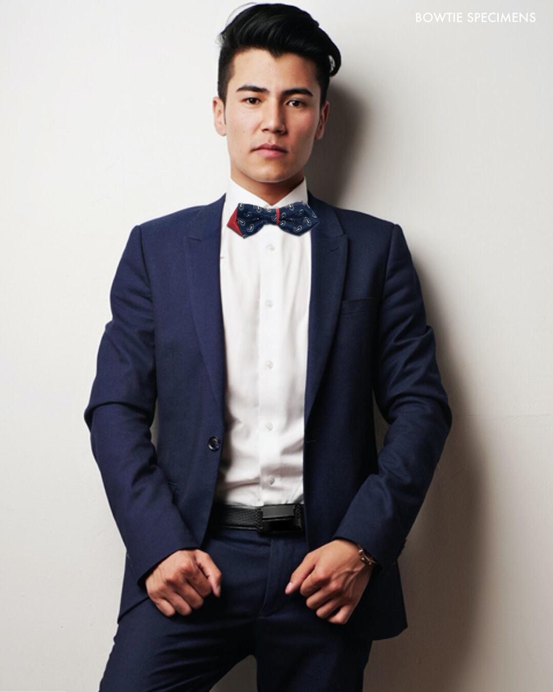★「スタンダード・ポインテッドエンド形」は、比較的どんなスタイルでも合わせやすいので、蝶ネクタイを揃える上で、「スタンダード・バタフライ形」と共にまずは1本は持っておきたい定番デザインです。フォーマルな場面はもちろん、カジュアルな着こなしを、もう少しドレスアップしたい時にもご活用いただけます。