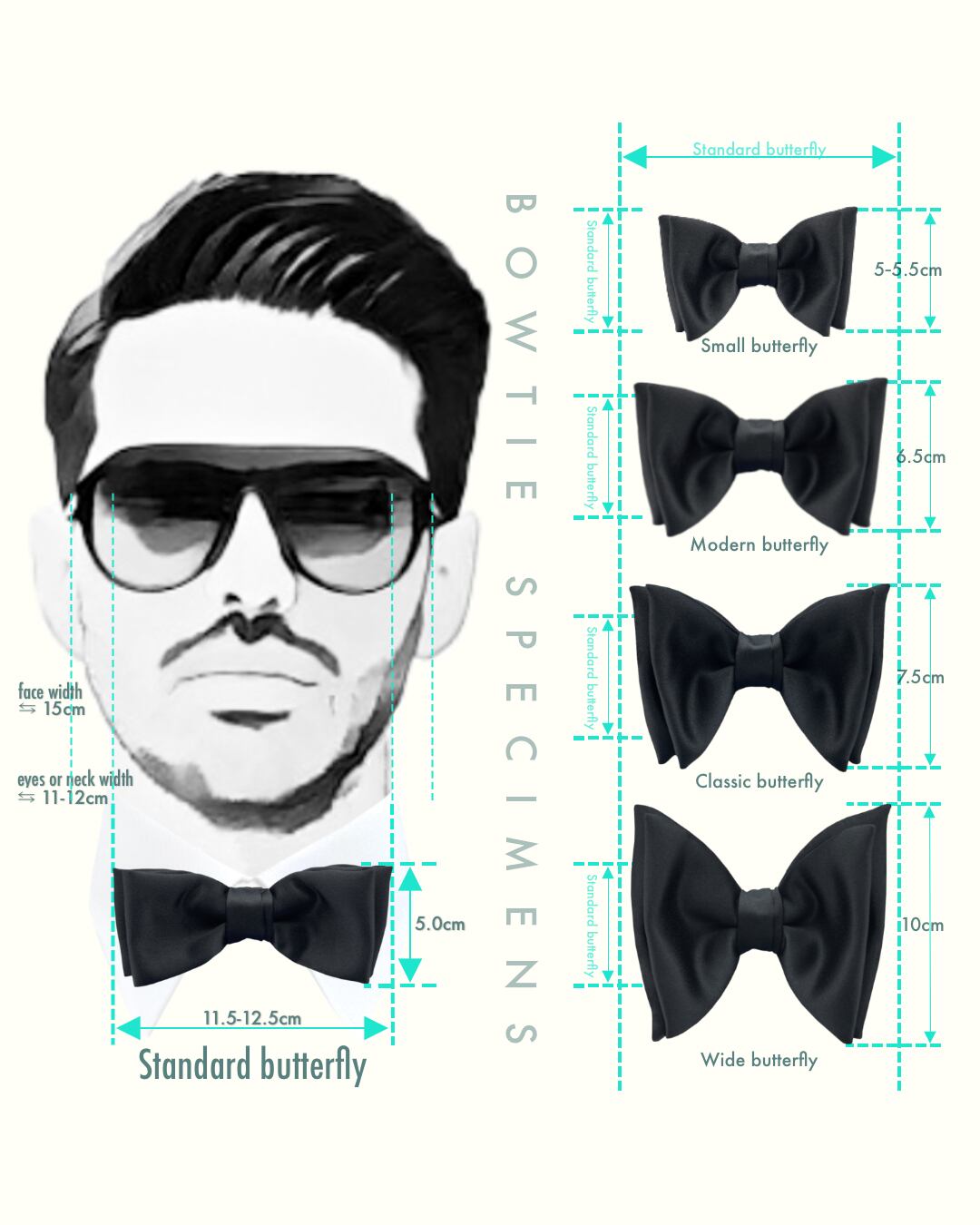 コーディネート関しては、結んで正面から見たときに、シャツ衿の水平幅サイズ内に十分に収まる大きさです。通常のバタフライ形と比べて、ユニークな印象を与えます。フォーマルだけでなく、カジュアルスタイルを、もう少しドレスアップしたい時に合わせやすいデザインです。