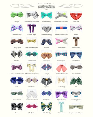 ★蝶ネクタイ ブランド「ボウタイ スペシメンズ」の作り結び蝶ネクタイ 。「作り結び」とは、予め結び目が縫って形作られているもののことで、ワンタッチで手軽に取り外しができます。