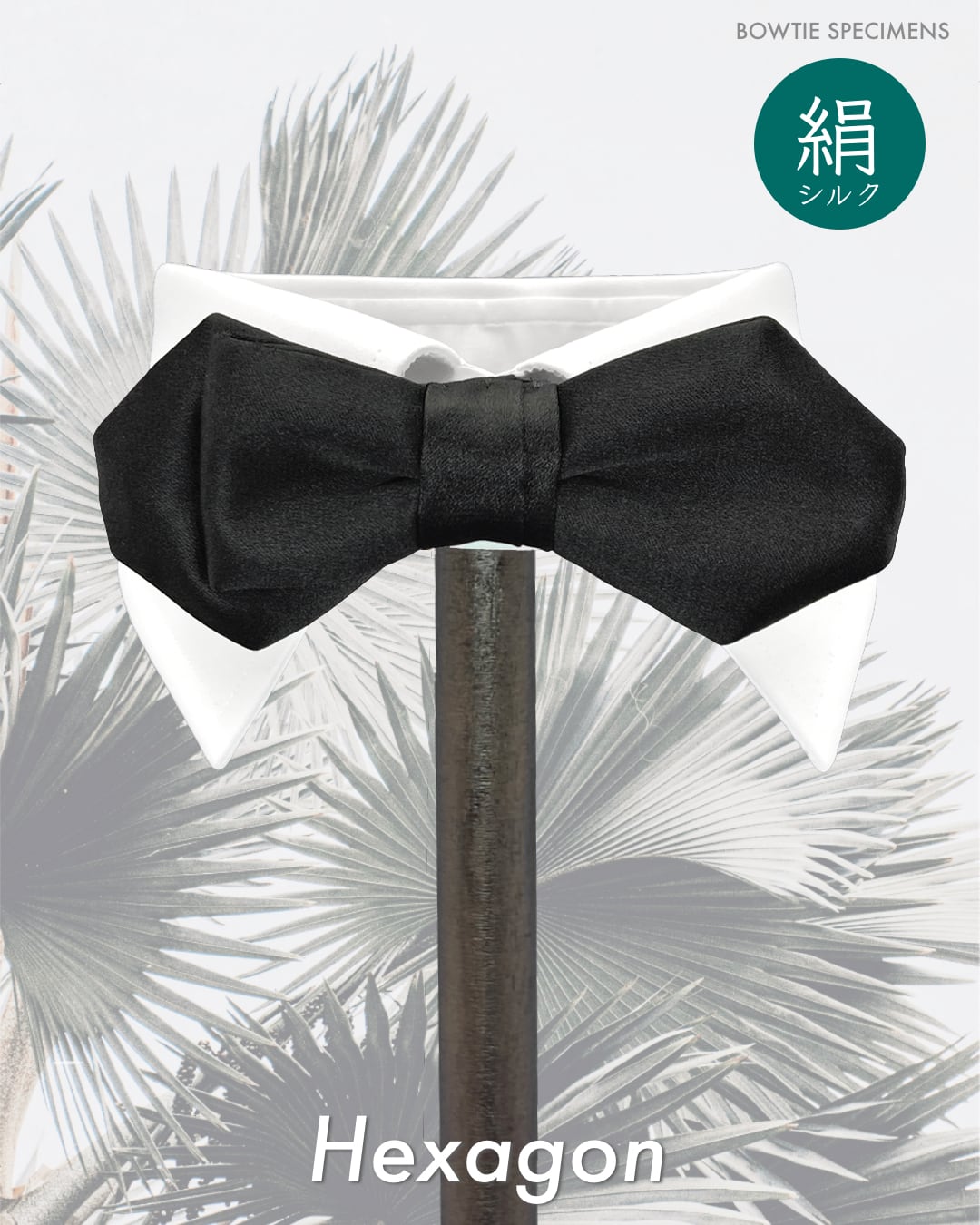 ヘキサゴン/六角形 (ブラックサテン/ソリッド) 作り結び型〈蝶ネクタイ 結婚式 黒 ウェディング ボウタイ スペシメンズ〉