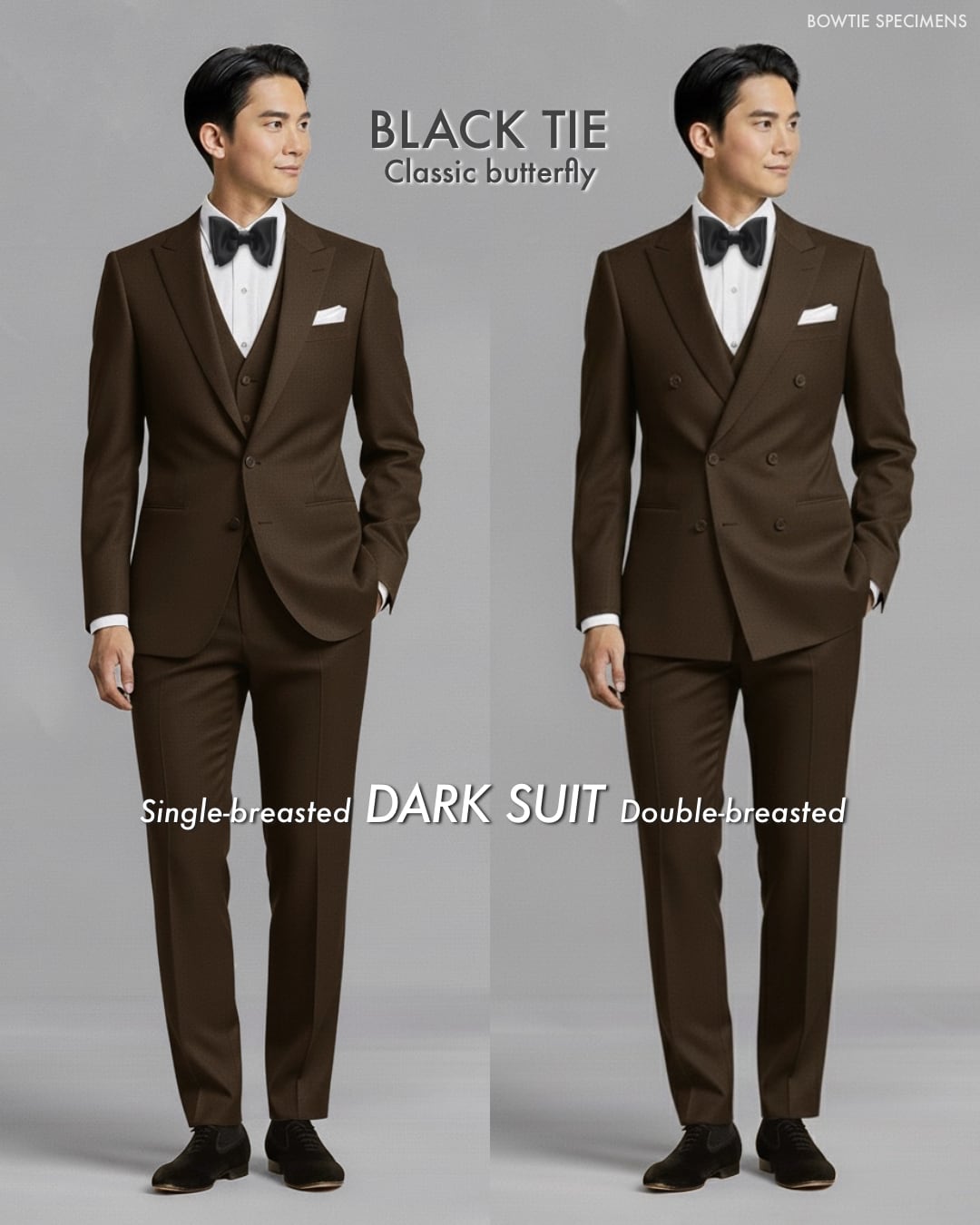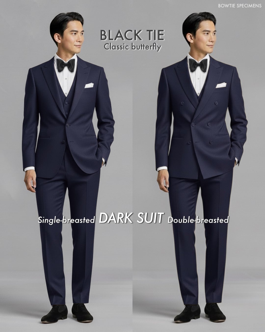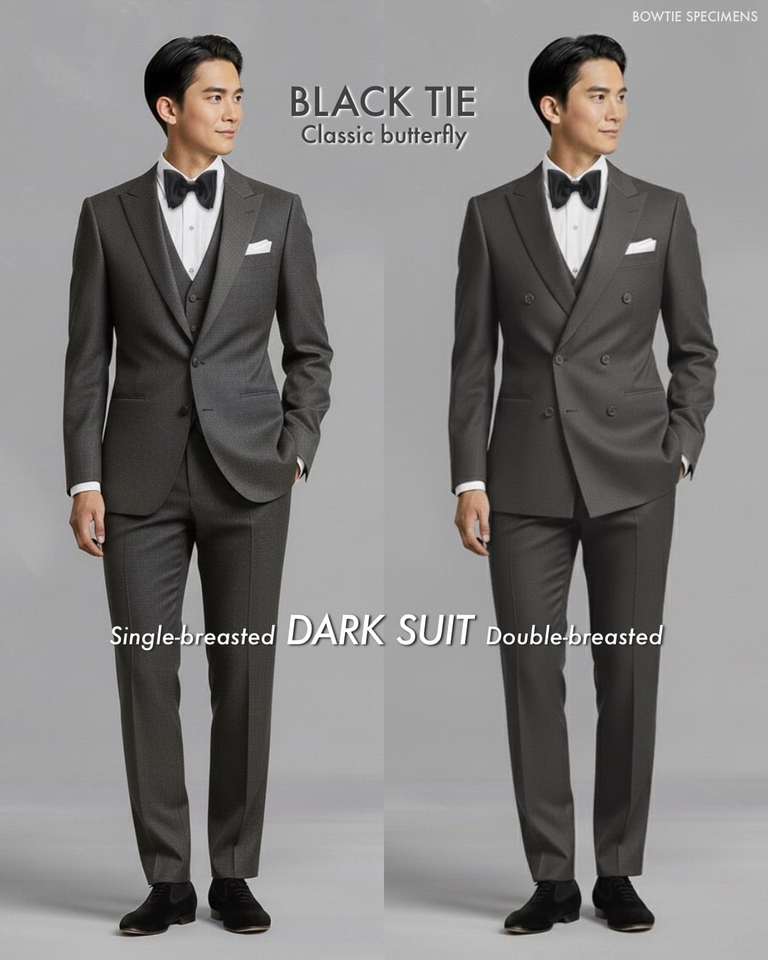 ・ダークスーツに結ぶ「黒の蝶ネクタイ」