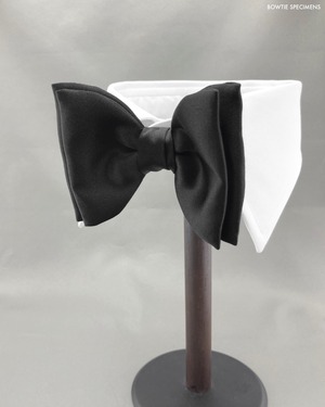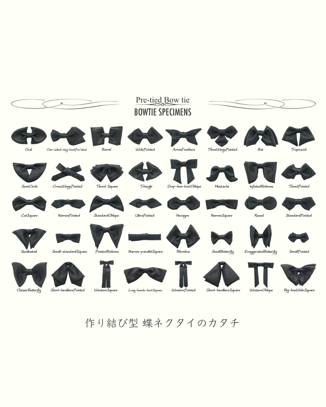★蝶ネクタイ ブランド「ボウタイ スペシメンズ」の作り結び蝶ネクタイ 。「作り結び」とは、予め結び目が縫って形作られているもののことで、ワンタッチで手軽に取り外しができます。