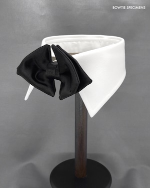 ★蝶ネクタイ ブランド「ボウタイ スペシメンズ」の作り結び蝶ネクタイ 。「作り結び」とは、予め結び目が縫って形作られているもののことで、ワンタッチで手軽に取り外しができます。