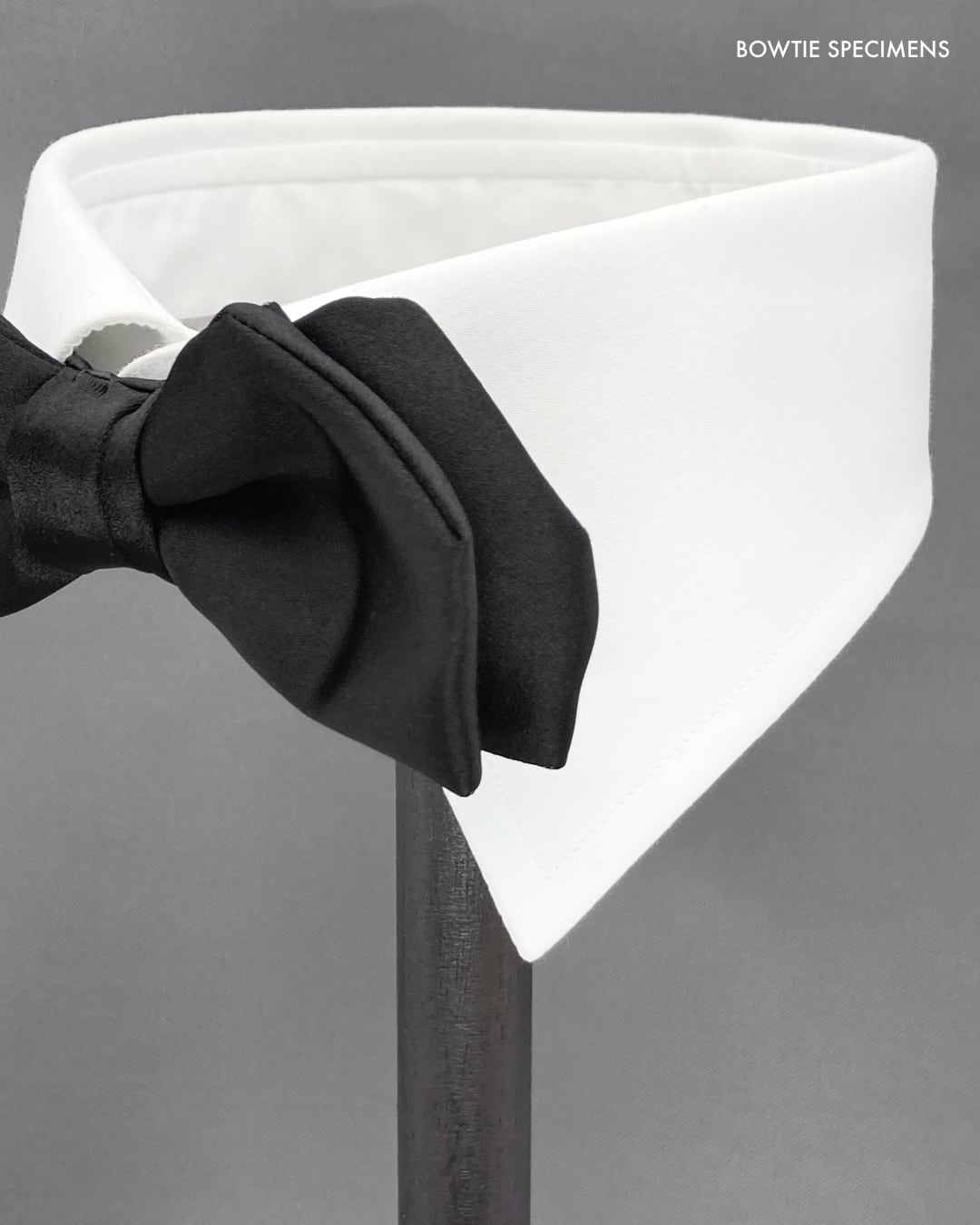 ★「黒の蝶ネクタイ」は20世紀に入り、タキシード(ディナージャケット)スタイルの1アイテムとして認知されるようになり、「ブラックタイ(夜間準礼装)」という名のドレスコード(服装規定)の所以になりました。燕尾服に「白ピケ織の蝶ネクタイ」を結ぶ、「ホワイトタイ(第一礼装)」の略式として使用されてきました。