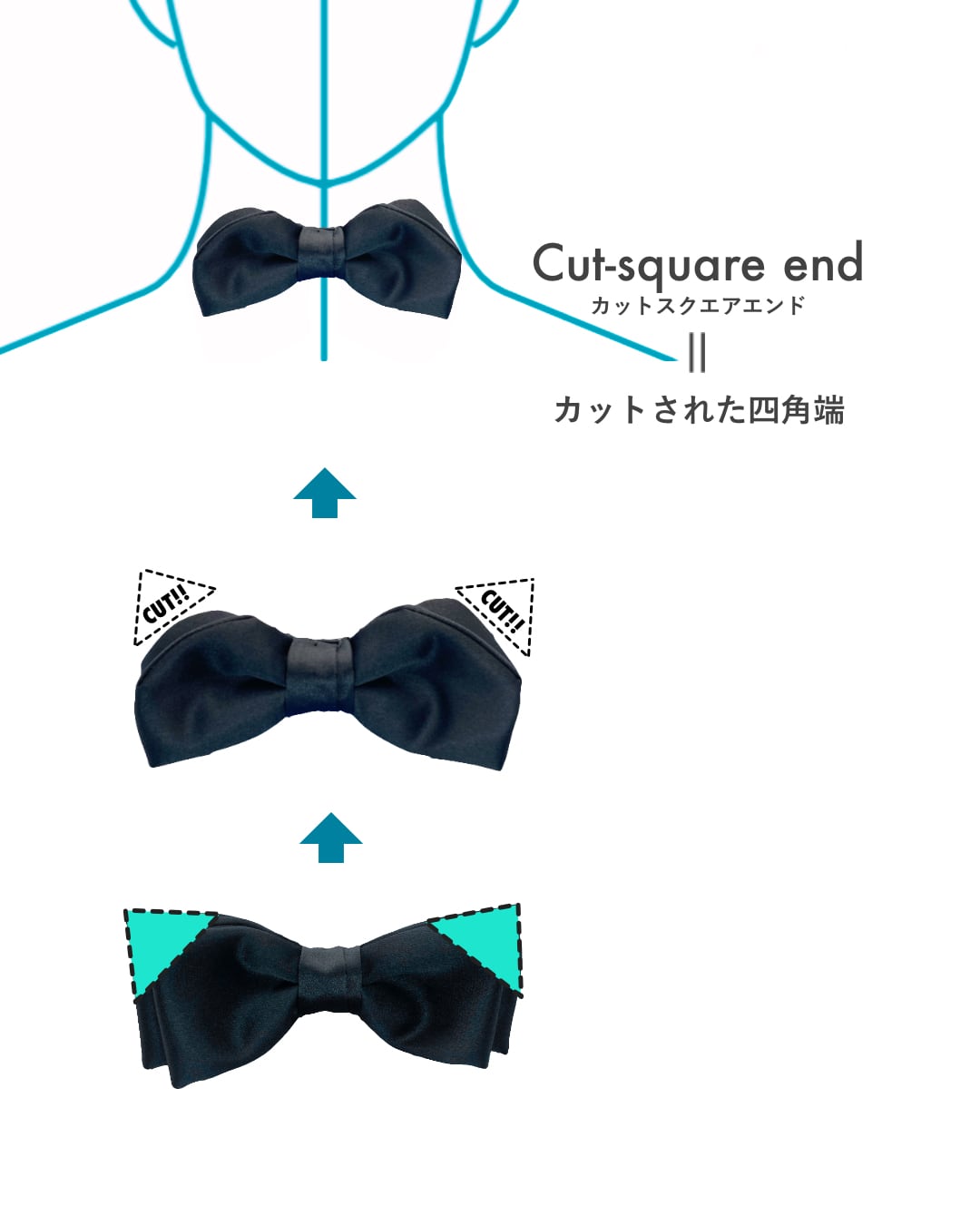 【品名】作り結び(フック)型 蝶ネクタイ カットオフ ・スクエアエンド