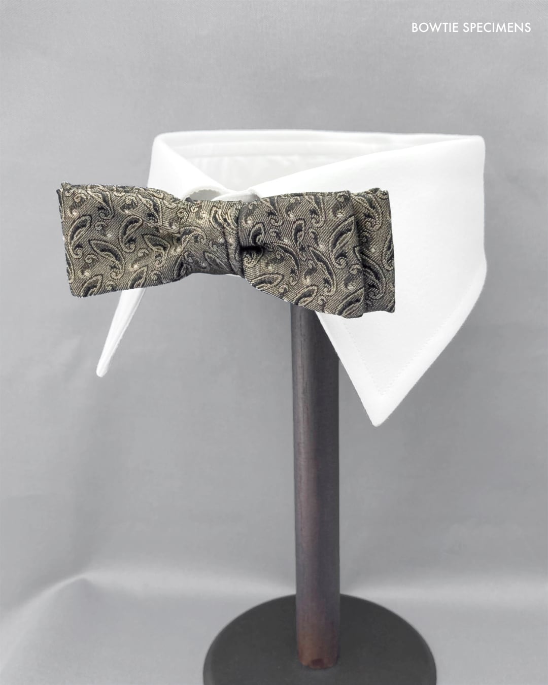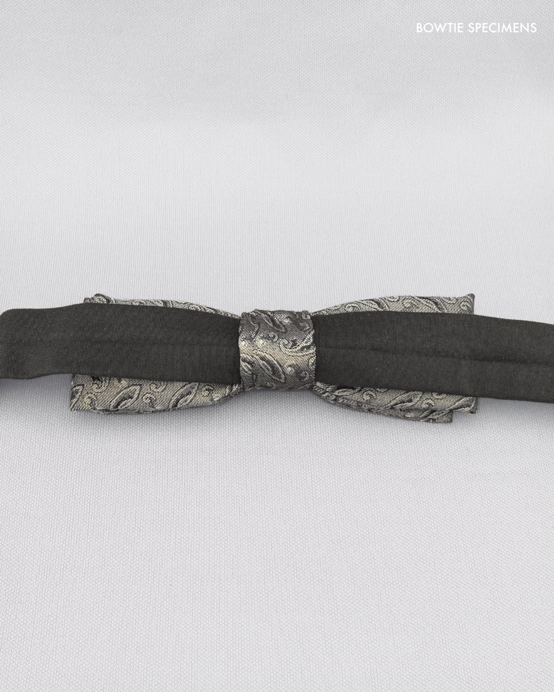 ボウタイ メンズ ナロー・スクエアエンド (アッシュゴールド×ブラックペイズリー) 作り結び型〈シルク 絹〉