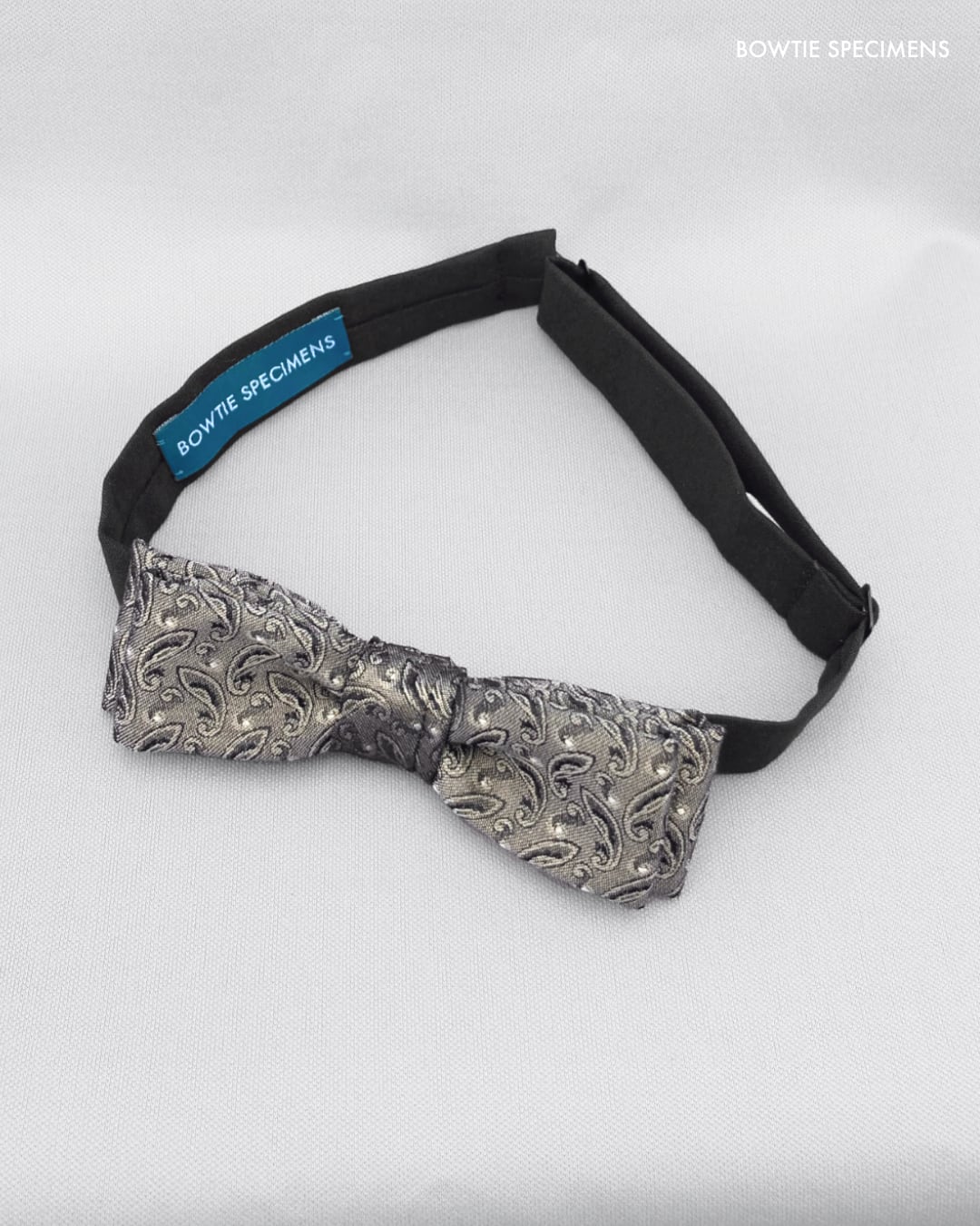 ★蝶ネクタイ ブランド「ボウタイ スペシメンズ」の作り結び蝶ネクタイ 。「作り結び」とは、予め結び目が縫って形作られているもののことで、ワンタッチで手軽に取り外しができます。