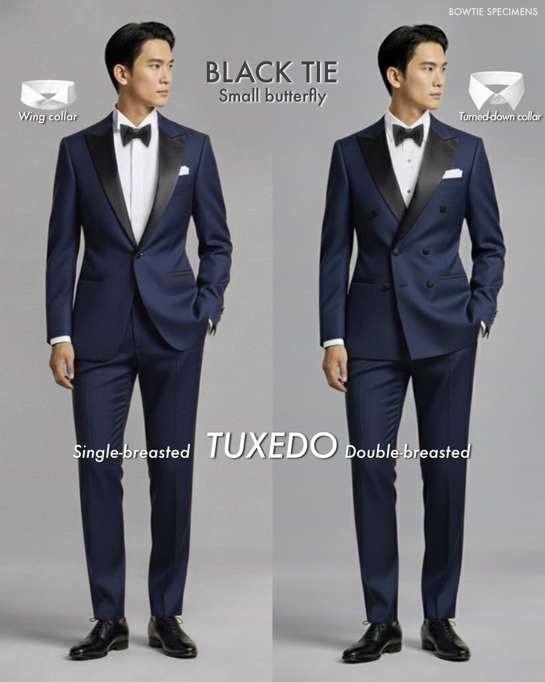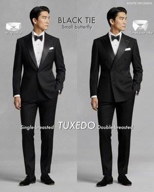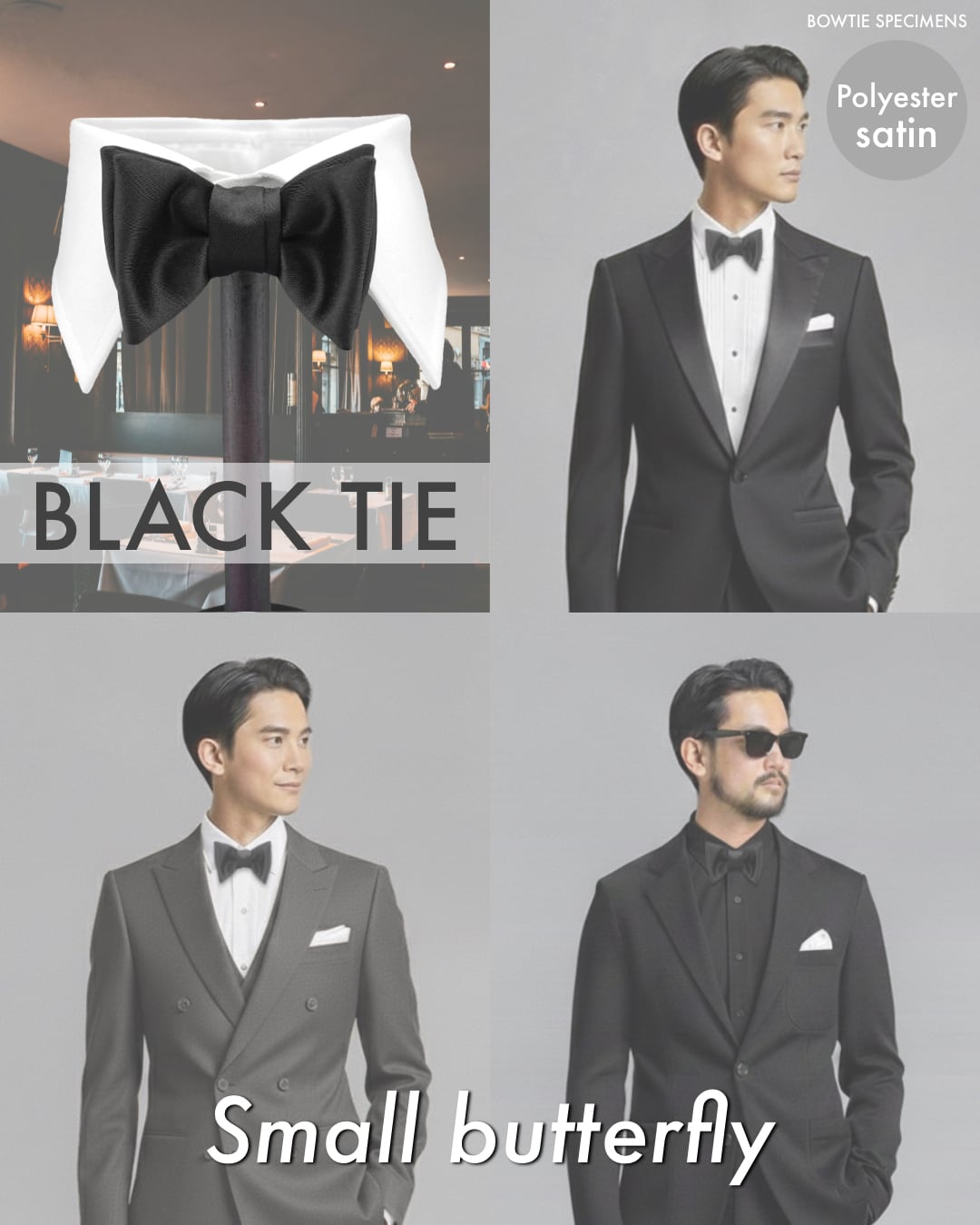 ・20世紀に入り欧米では、「ドレスコード(服装規定)」というものが作られました。その中で「黒の蝶ネクタイ(特にサテン地)」は、「ブラックタイ(夜間準礼装)」という服装のシンボルとなりました。ブラックタイとは、タキシード(ディナースーツ)を着るスタイルのことで、元来は細かなルールが定められています。