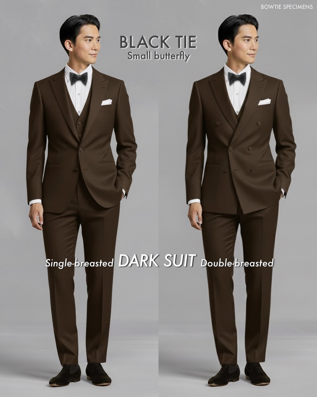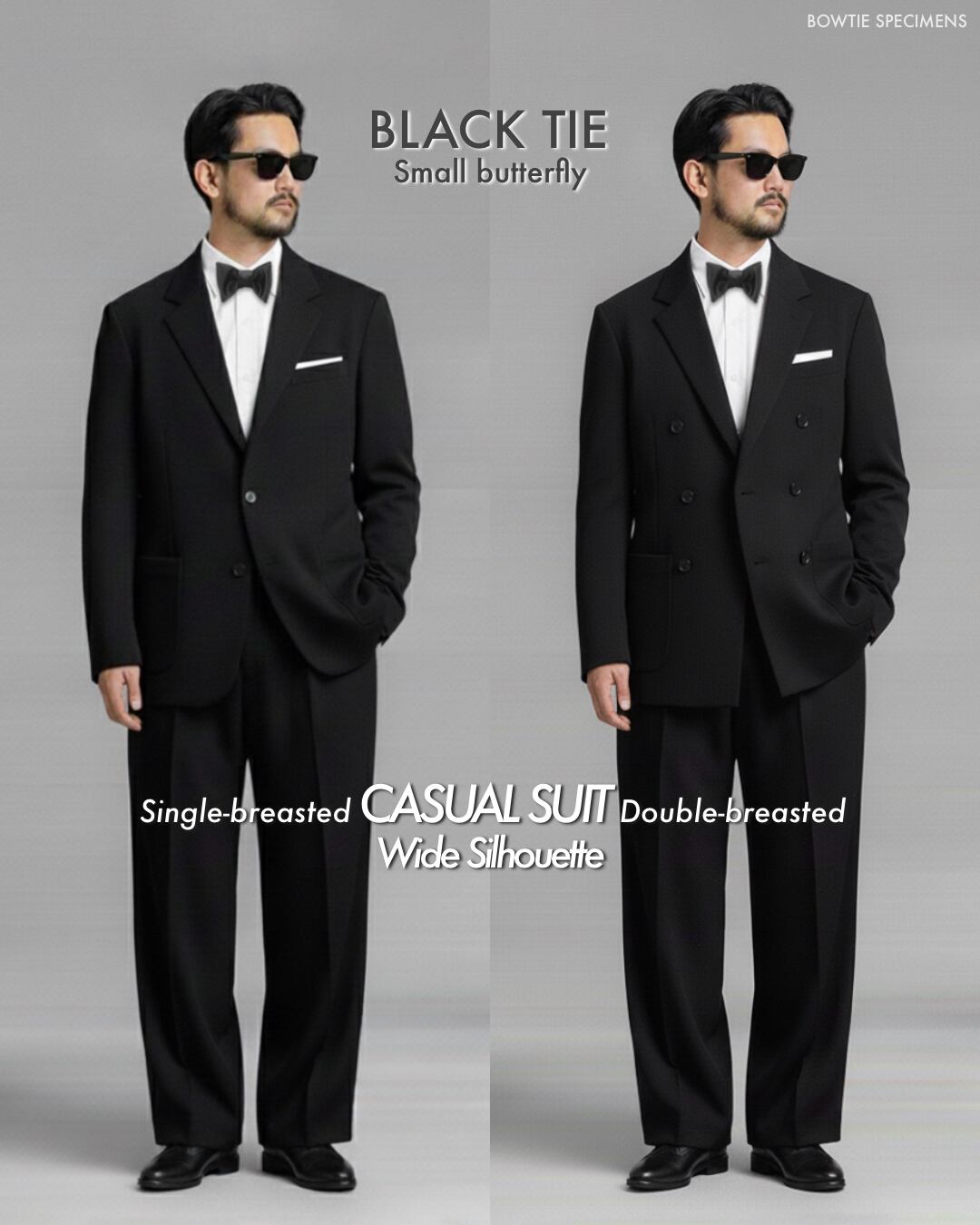 ・ダークスーツに結ぶ「黒の蝶ネクタイ」
