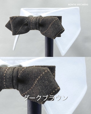 ★蝶ネクタイ ブランド「ボウタイ スペシメンズ」の作り結び蝶ネクタイ 。「作り結び」とは、予め結び目が縫って形作られているもののことで、ワンタッチで手軽に取り外しができます。